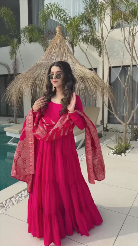 Graceful Pure Romansilk Chanderi Anarkali Set with Pant & Dupatta